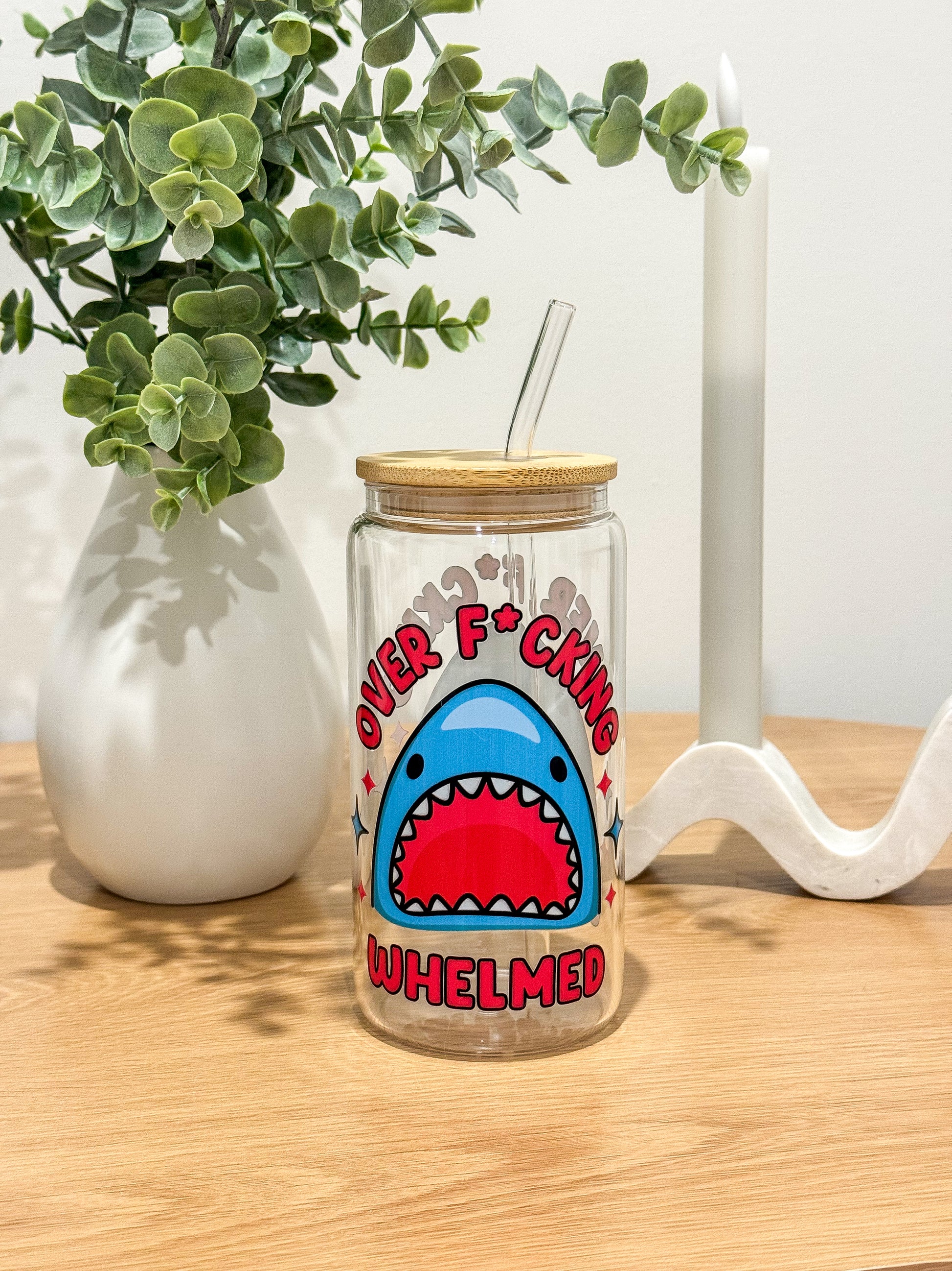 Featuring a hilariously relatable quote and a cute little shark design, this glass cup is the perfect blend of sass and humour for those chaotic, caffeine-fueled days.